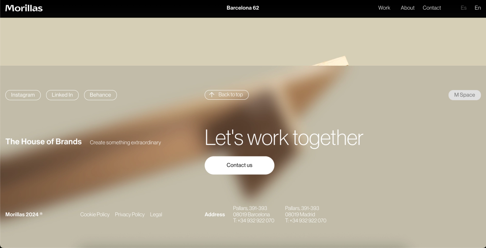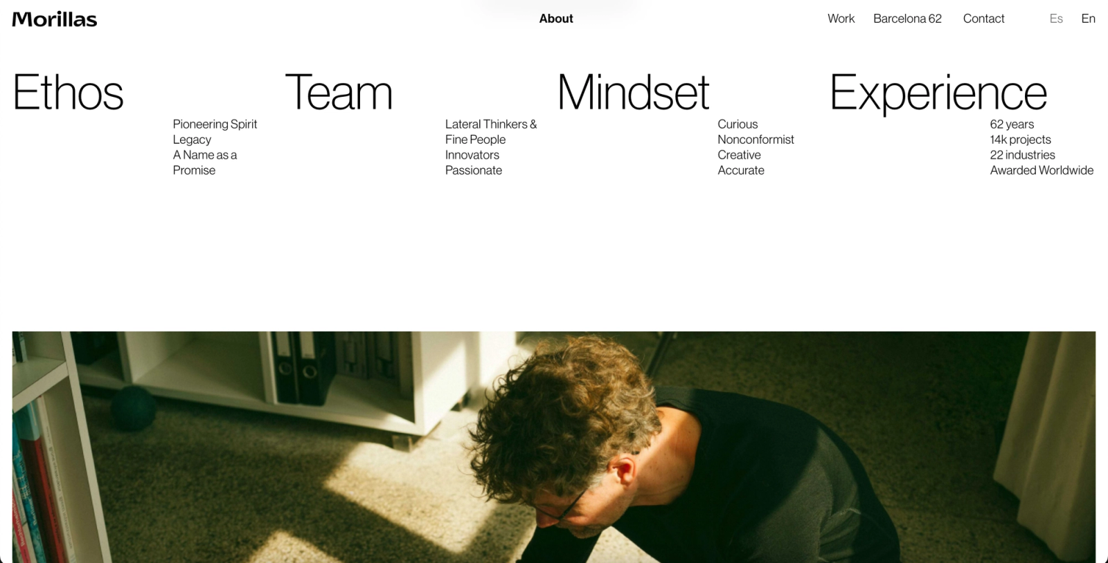 The main challenge was to successfully convey the high standards of the Morillas agency through the interface and interactions of the portfolio. For control and stability, the site uses WordPress with ACF to manage custom content. Animations are finely tuned using GSAP, and some elements utilize very subtle Three.js scenes for a sense of depth. Finally, another challenge, given the quantity and diversity of the agency's projects, was to make the project filtering system by category and subcategory both functional and intuitive.